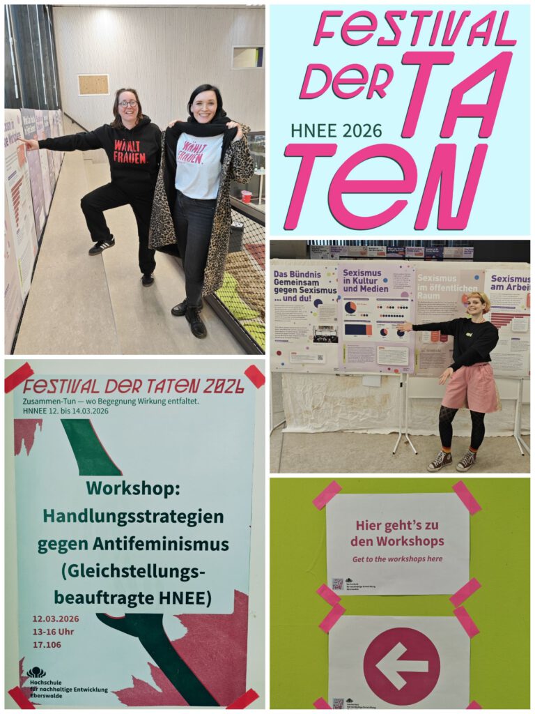 Heute war ich im Rahmen des Festivals beim Workshop „Handlungsstrategien gegen Antifeminismus“. Antifeministische Positionen begegnen uns an vielen Orten – an Hochschulen, bei der Arbeit oder im privaten Umfeld. Im Workshop ging es darum, darüber zu sprechen, Erfahrungen zu teilen und gemeinsam zu überlegen, wie wir in solchen Situationen handlungsfähig bleiben können. Wie zeigen wir Haltung? Wie reagieren wir, wenn Grenzen überschritten werden? Und wie können wir uns gegenseitig stärken?